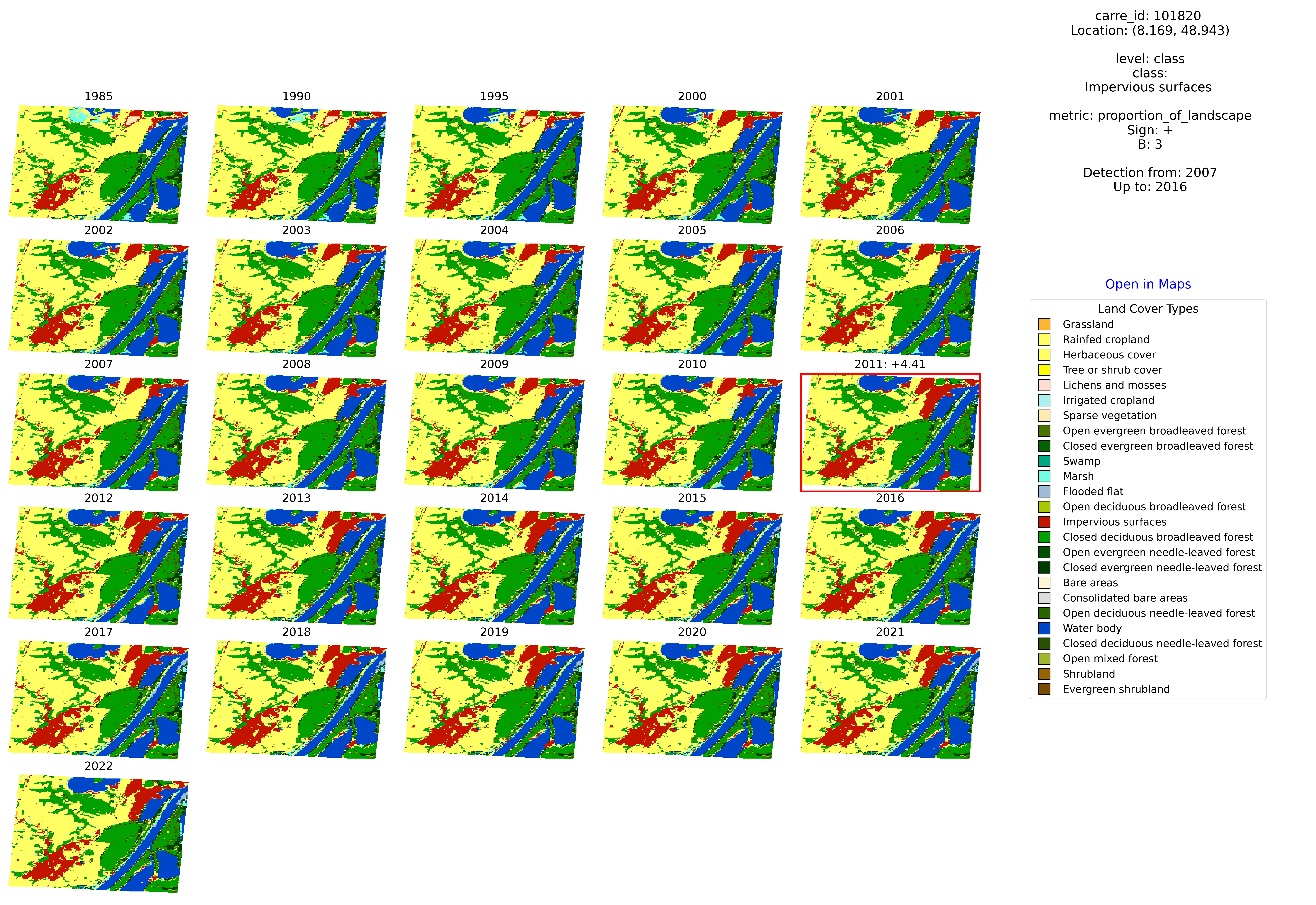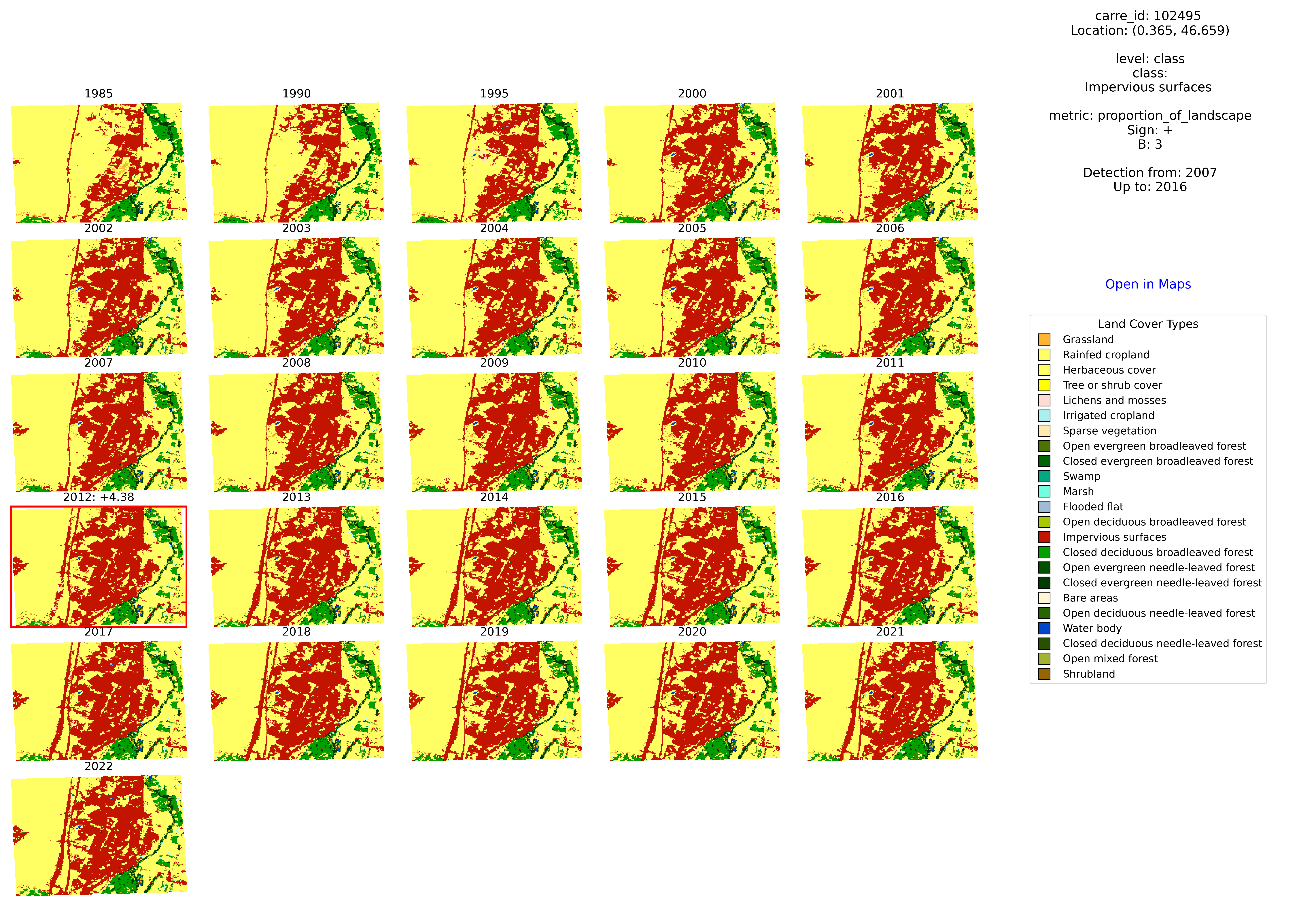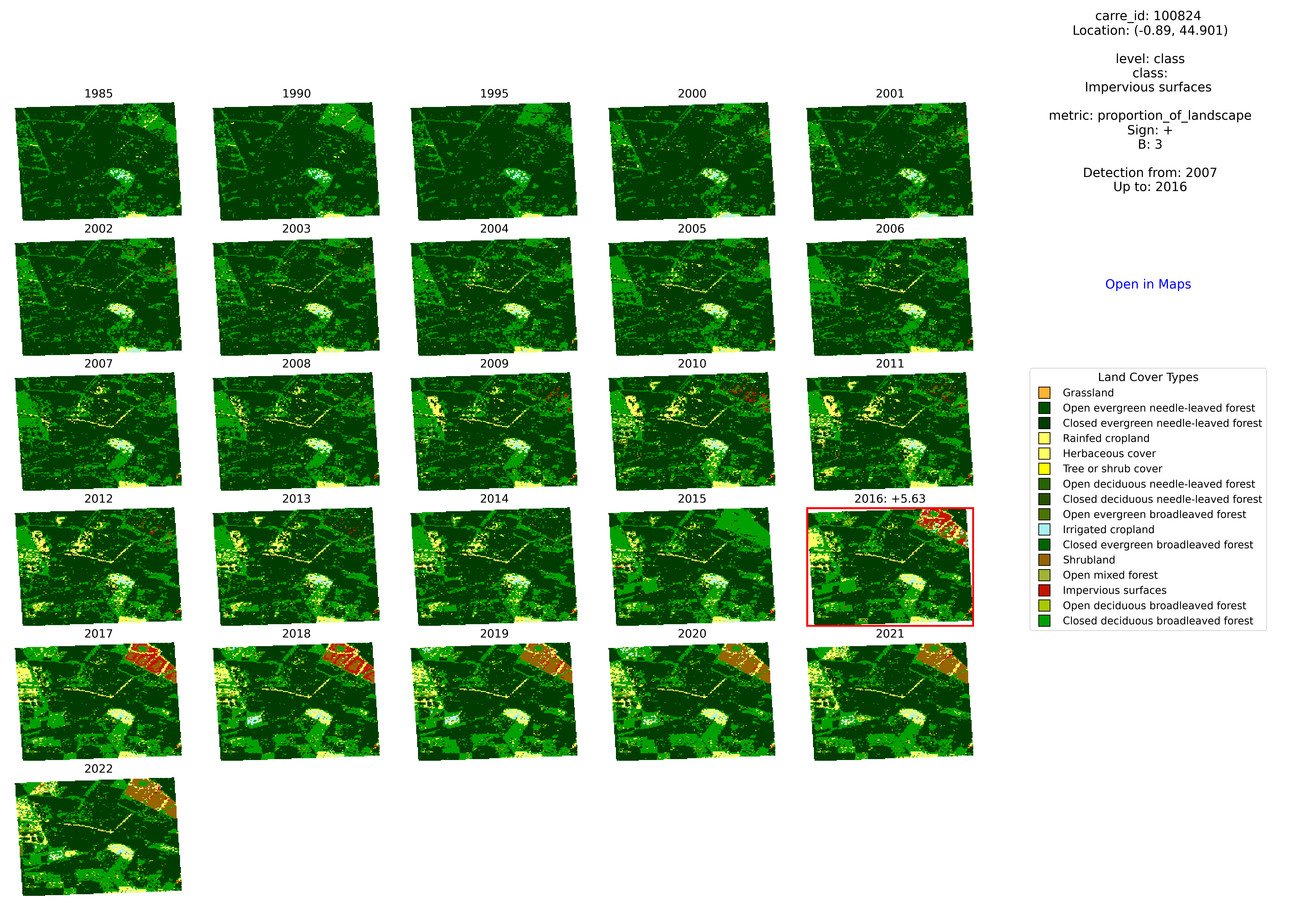 I = [avg - B*std, avg + B*std]after standardizing the successive annual changes.- Finally, we identify the time series affected by extreme land cover changes that i) ∉